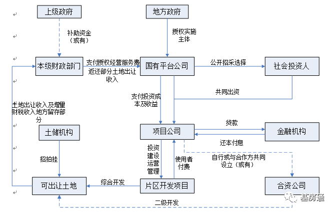 政府授權實施機構,按照《基礎設施和公用事業(yè)特許經營管理辦法》相關要求,采用“特許經營”模式通過公開招標方式確定社會資本方,社會資本中標后,自行或組建項目公司作為項目的特許經營權人,與實施機構簽訂特許經營協(xié)議,并按照特許經營協(xié)議約定負責項目投資、融資、設計、建設、運營及移交等工作。項目公司通過項目用戶付費、配套設施經營性收入、政府可行性缺口補貼等收回投資并獲得合理回報。