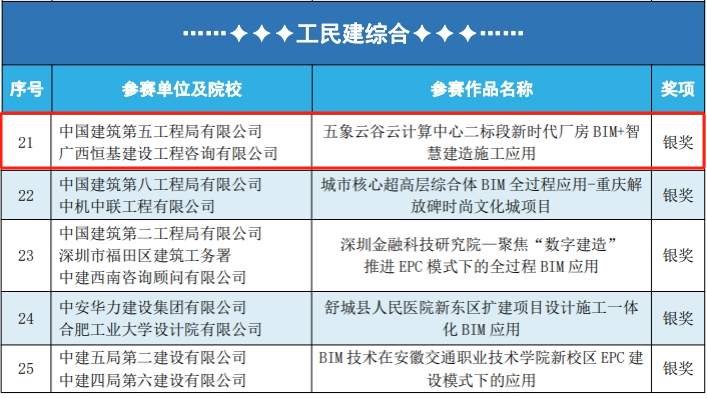 近日,由工業(yè)和信息化部人才交流中心主辦的2023第六屆“優(yōu)路杯”全國BIM技術大賽公布獲獎名單,恒基咨詢報送的作品《五象云谷云計算中心二標段新時代廠房BIM+智慧建造施工應用》榮獲大賽銀獎。