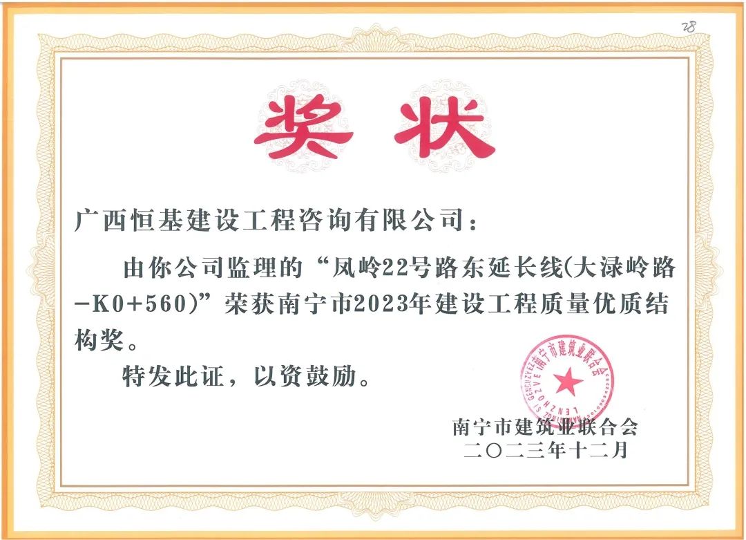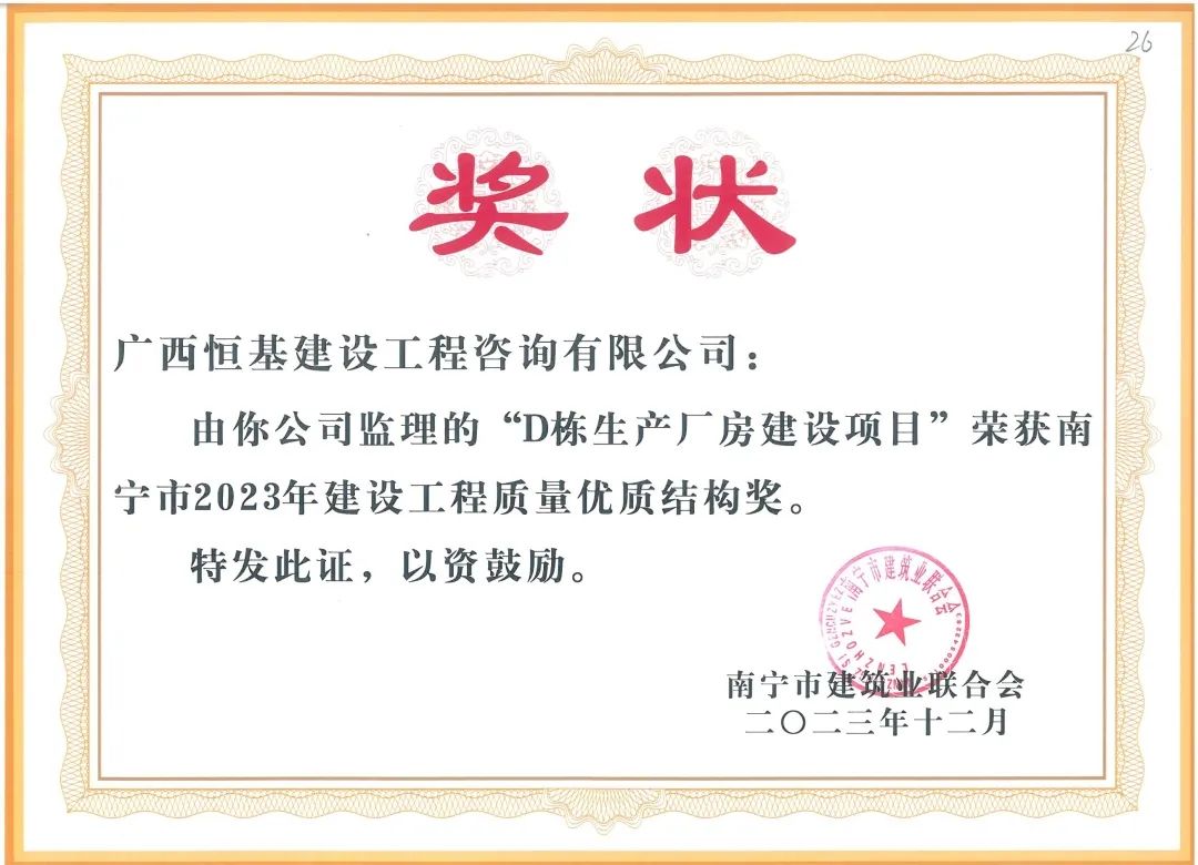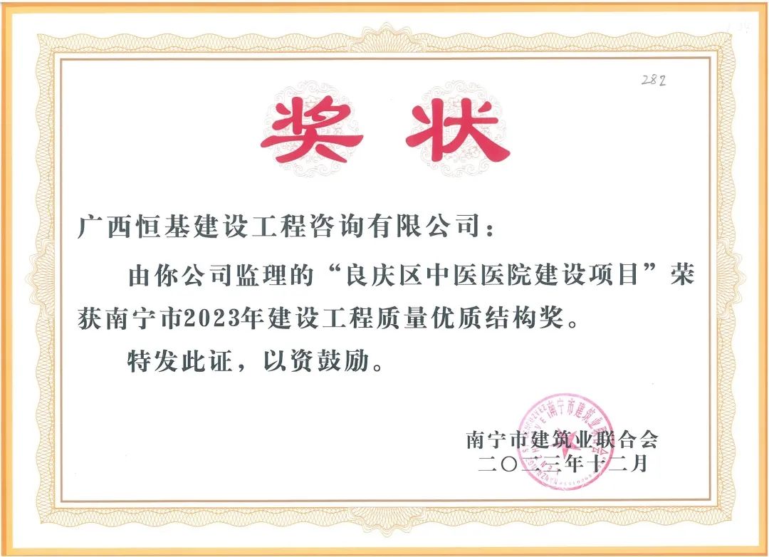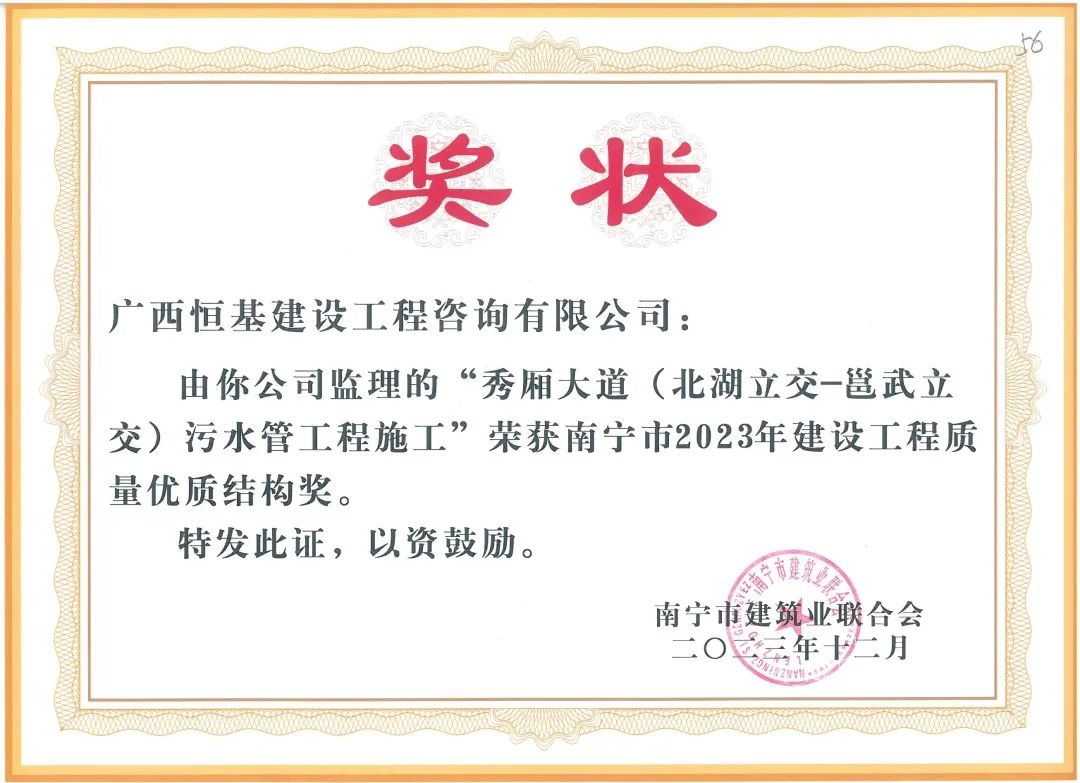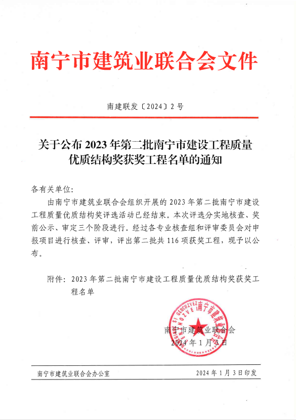 再添7項南寧市建設(shè)工程質(zhì)量優(yōu)質(zhì)結(jié)構(gòu)獎!
