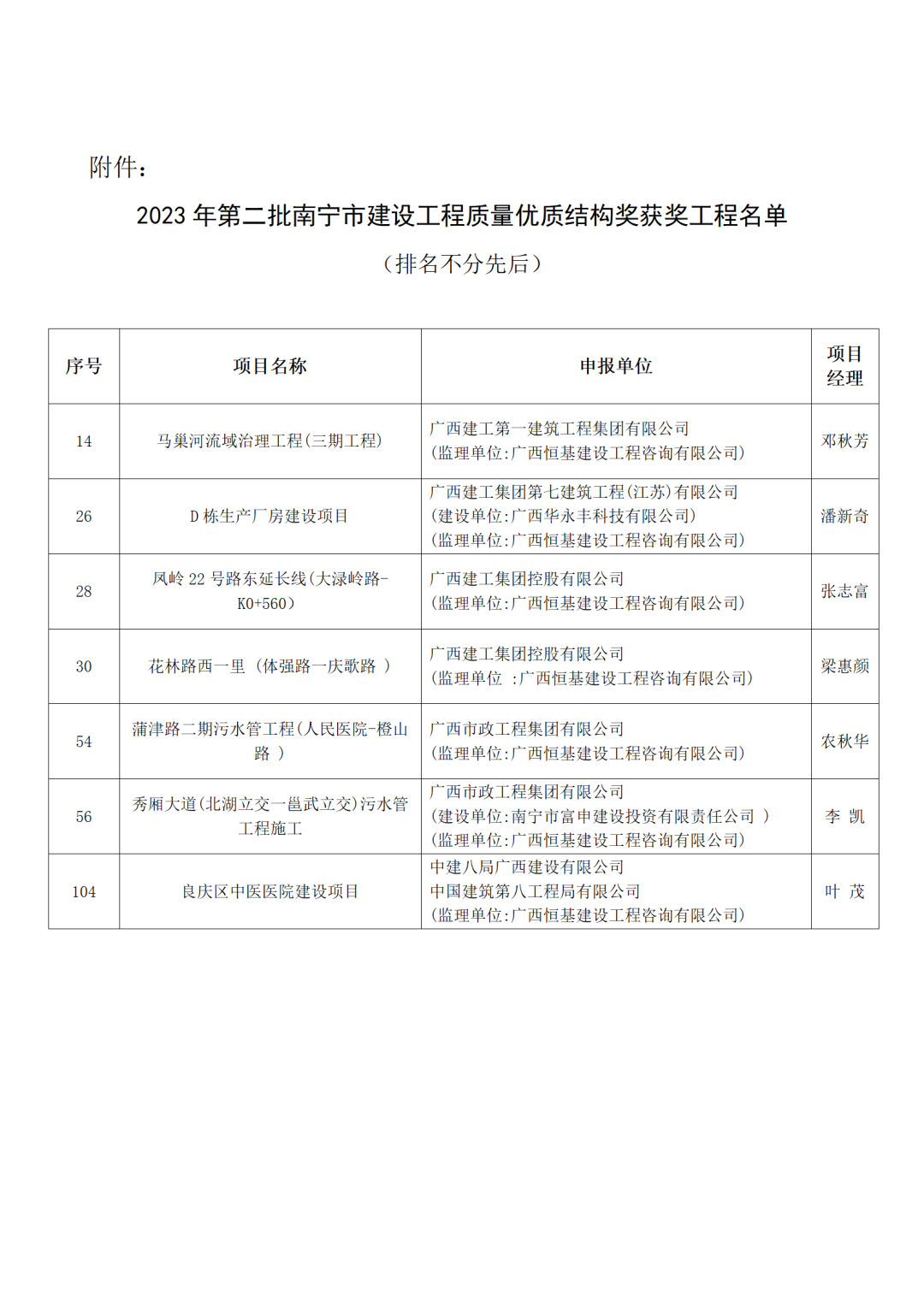 近日,南寧市建筑業(yè)聯(lián)合會公布獲獎名單