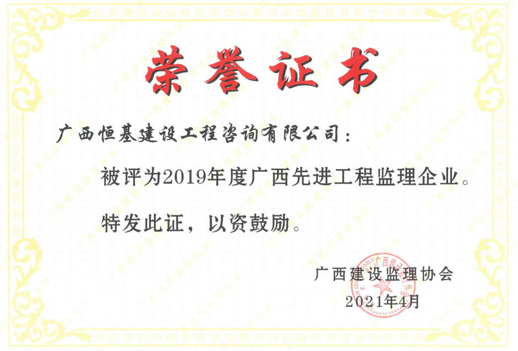 2019年度廣西先進(jìn)工程監(jiān)理企業(yè)
