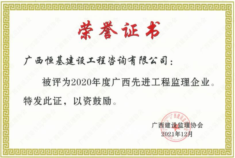 2020年度廣西先進(jìn)工程監(jiān)理企業(yè)