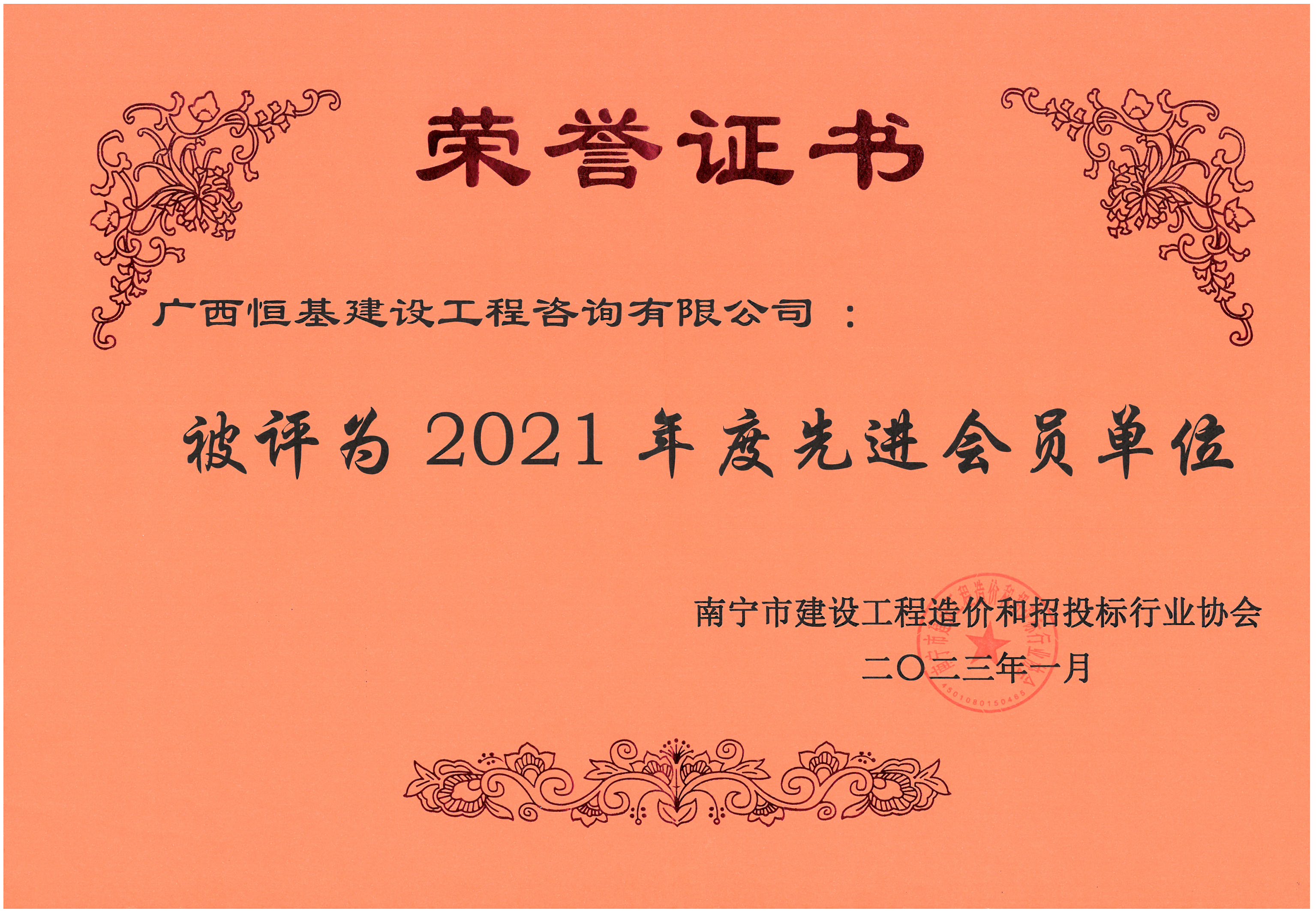 2021年度南寧市建設(shè)工程造價(jià)和招投標(biāo)行業(yè)協(xié)會(huì)先進(jìn)會(huì)員單位